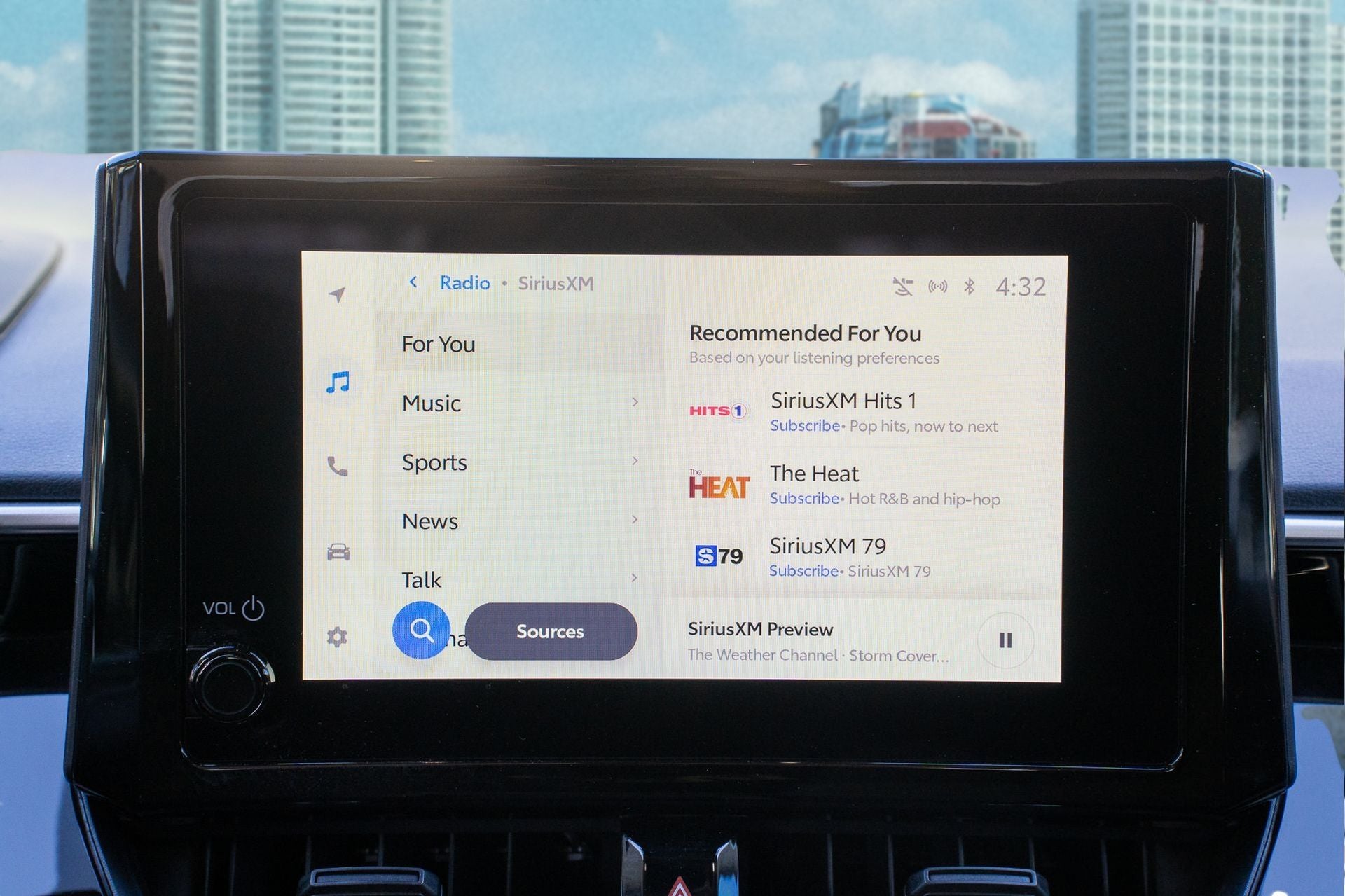 - Radio: 8" Toyota Audio Multimedia -inc: 6 speakers, wireless Apple CarPlay and Android Auto compatibility and SiriusXM 3-month trial subscription