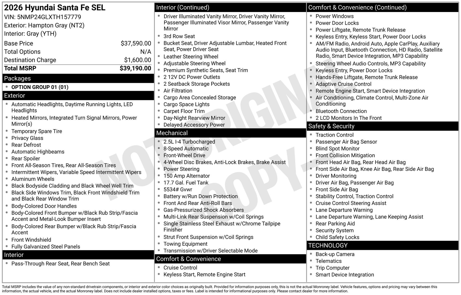Whether you're embarking on a family adventure or tackling your daily commute, the 2026 Hyundai Santa Fe SEL is the perfect companion. Experience the perfect balance of style, performance, and cutting-edge technology. Visit our showroom today to take this remarkable SUV for a test drive and discover why it's the smart choice for your next vehicle.